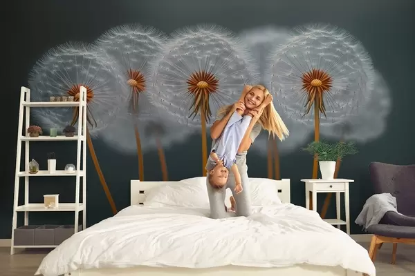 Fototapet Luftiga maskrosor mot en mörk naturlig bakgrund Nr. w08498