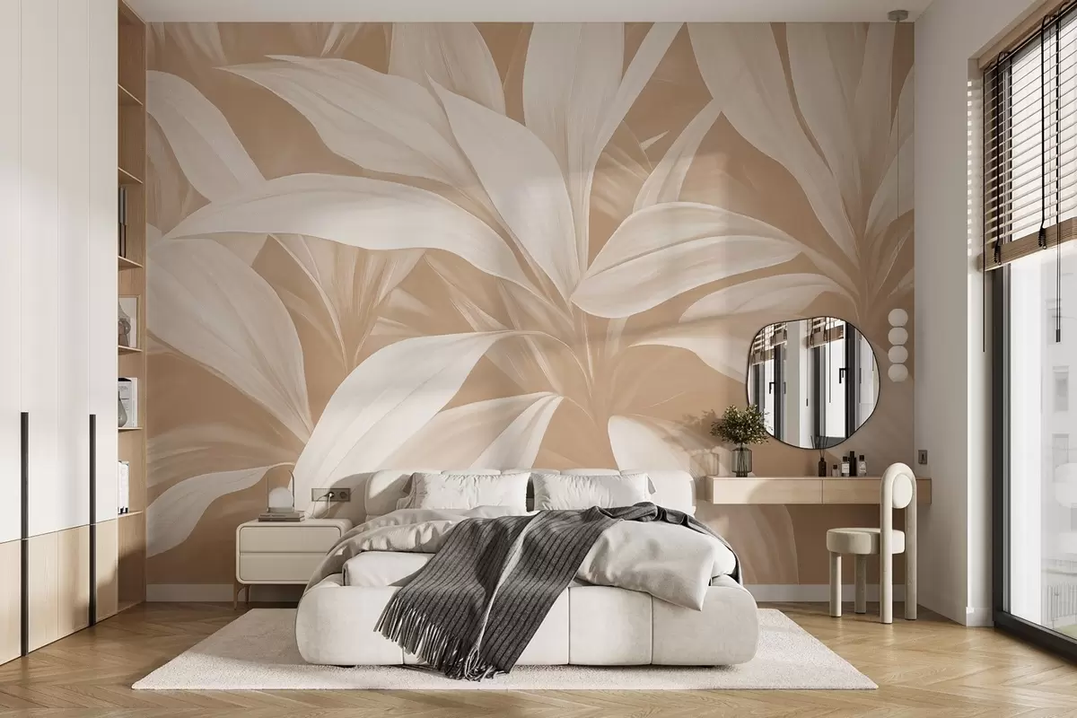 Fototapet Stora växtblad i en mjuk rosa färg w08501