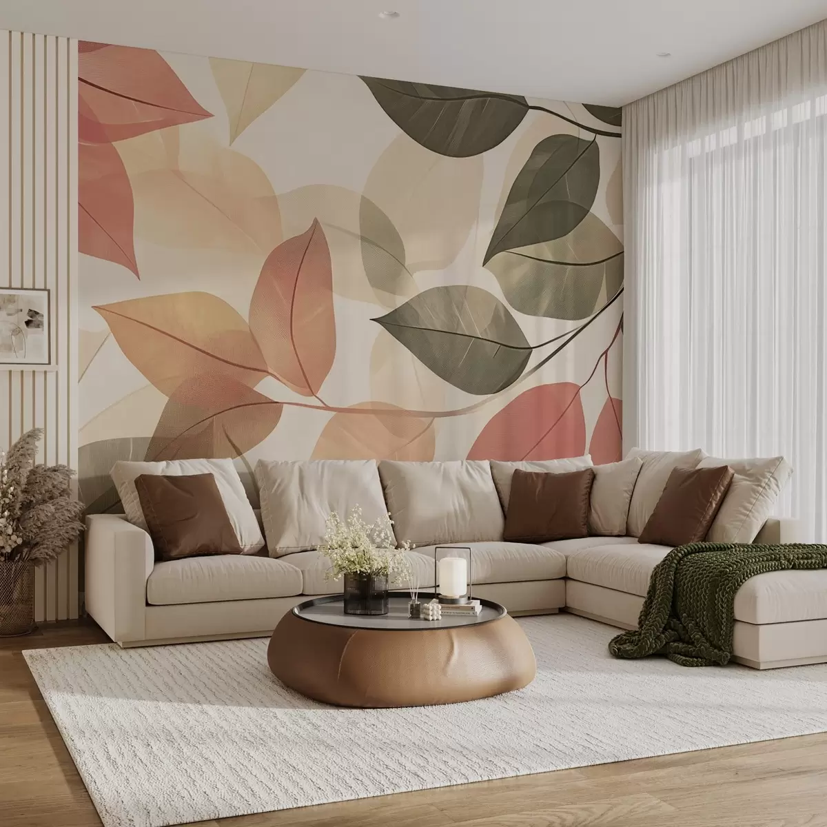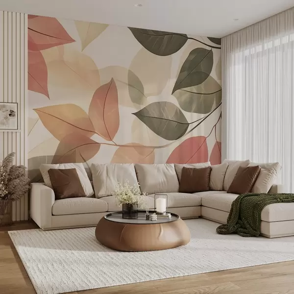 Fototapet Grenar av löv i röda och gröna toner Nr. w08502