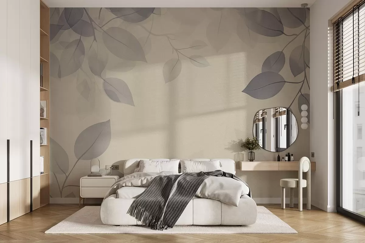 Fototapet Hängande grenar med blad i blå toner Nr. w08551