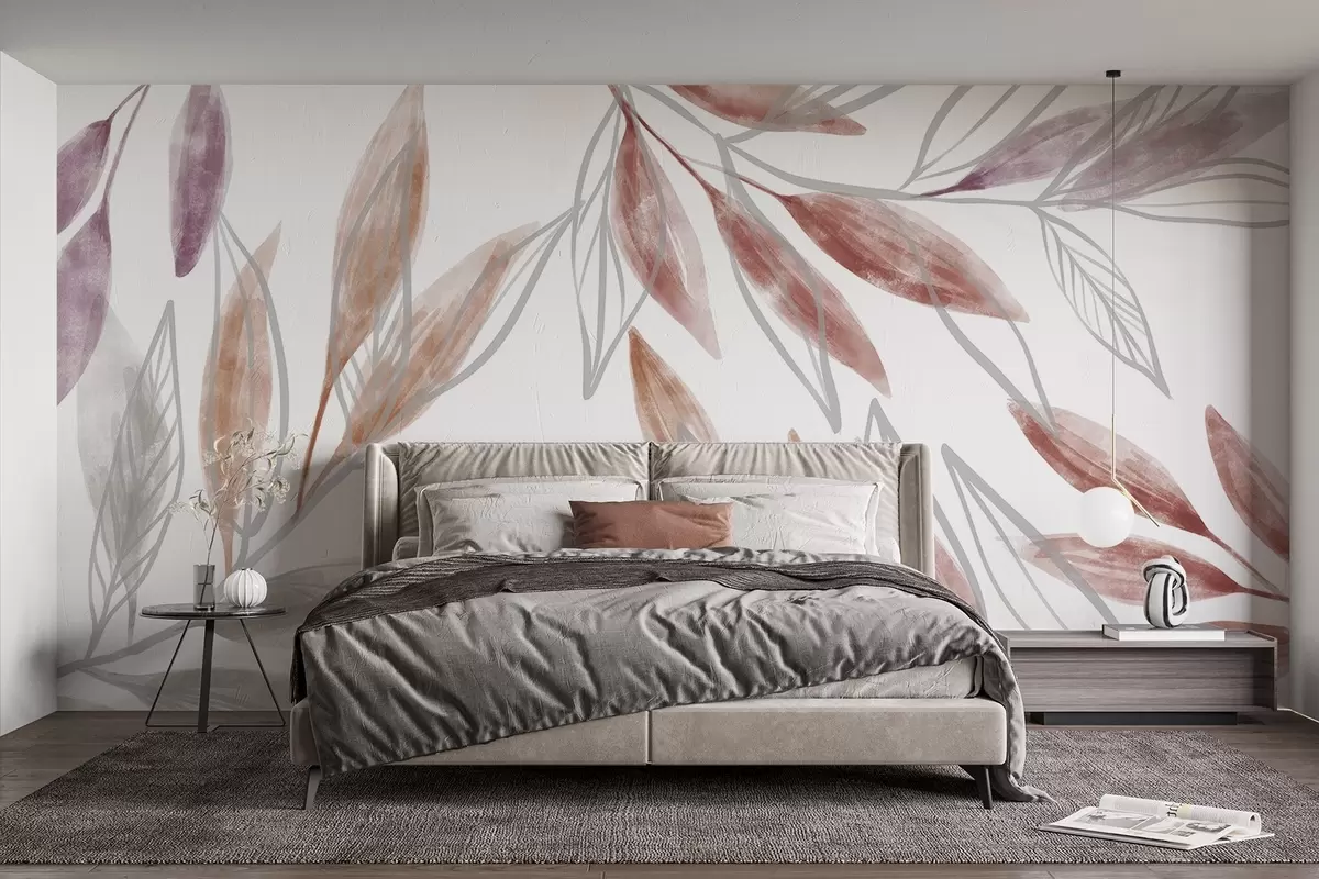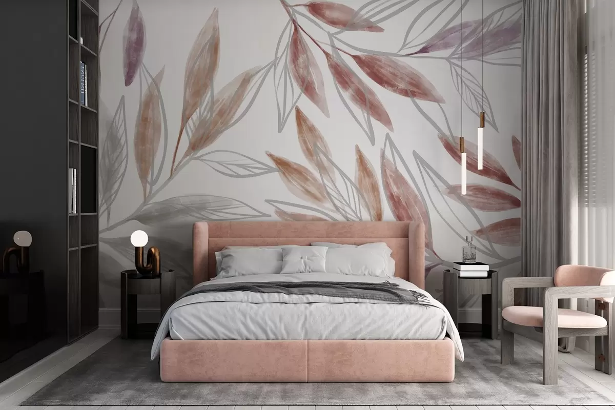 Fototapet Delikat rosa och grå texturerade pastellblad som skapar en lugn och minimalistisk botanisk komposition Nr. w08642