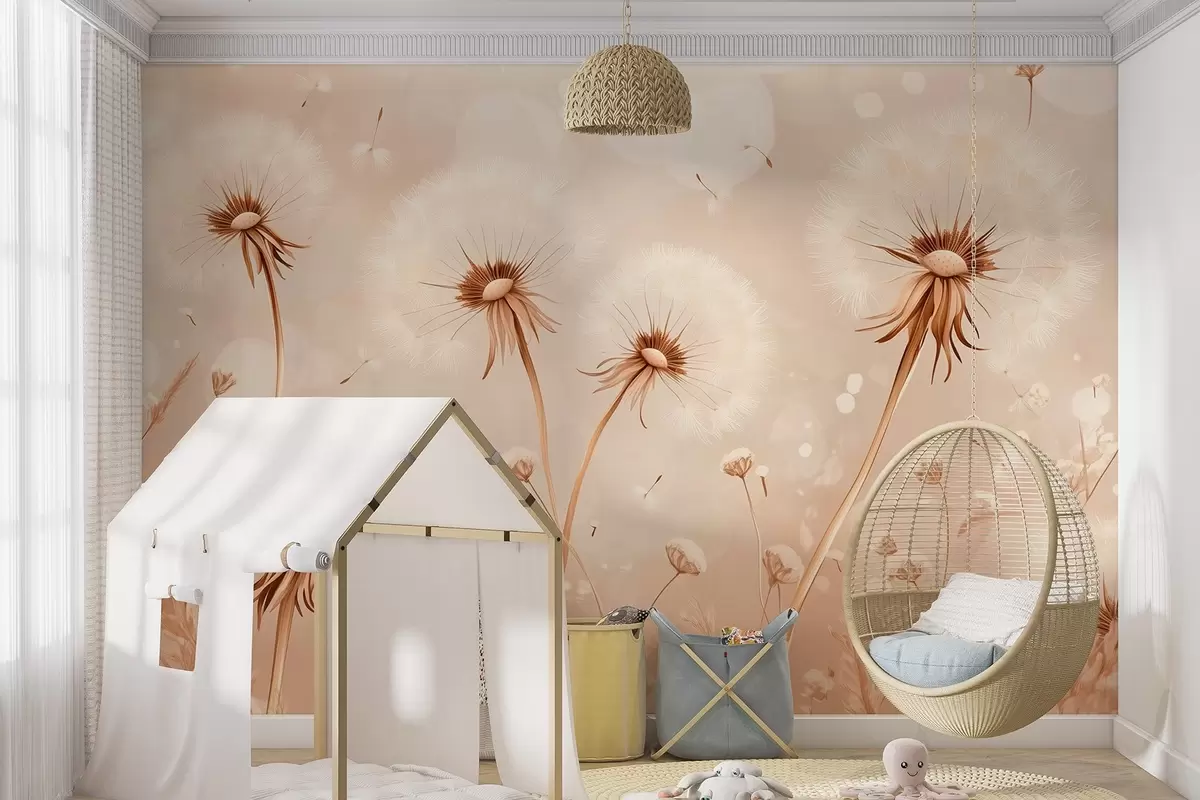 Fototapet Eleganta maskrosor och vildblommor i målningsstil i varma toner Nr. w08657