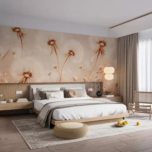Fototapet Eleganta maskrosor och vildblommor i målningsstil i varma toner Nr. w08657