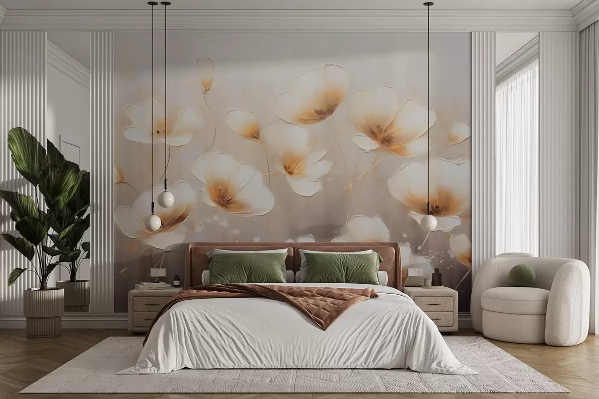 Fototapet Eleganta blommor med skira, mjuka kronblad i varma nyanser Nr. w08746