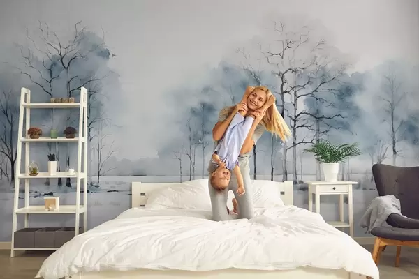Fototapet Blå träd i akvarellstil på en vit bakgrund Nr. w08753