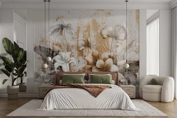 Fototapet Vintagedesign med exotiska blommor och växter Nr. w08767