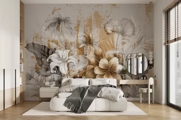 Fototapet Vintagedesign med exotiska blommor och växter Nr. w08767
