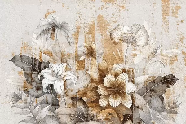 Fototapet Vintagedesign med exotiska blommor och växter Nr. w08767v3