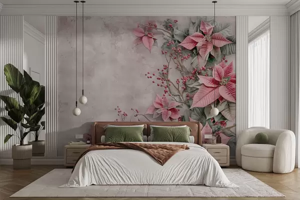 Fototapet Julstjärneblommor på en åldrad betongbakgrund Nr. w08798