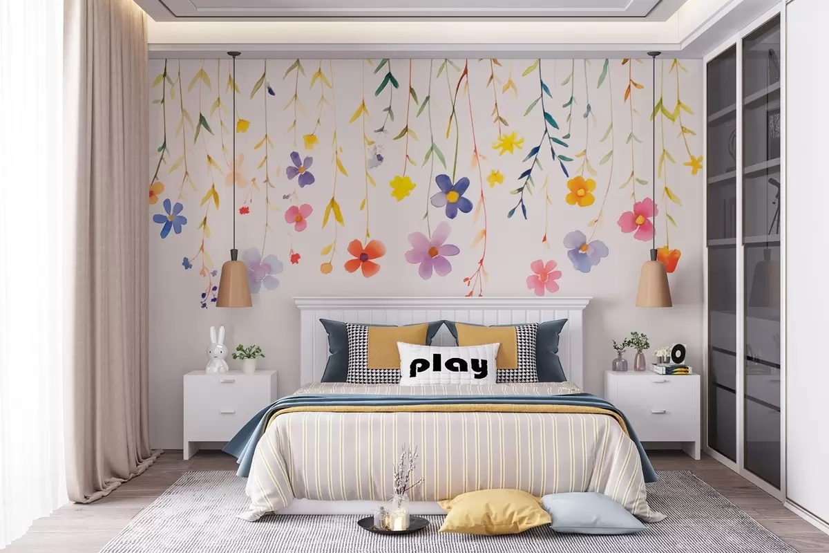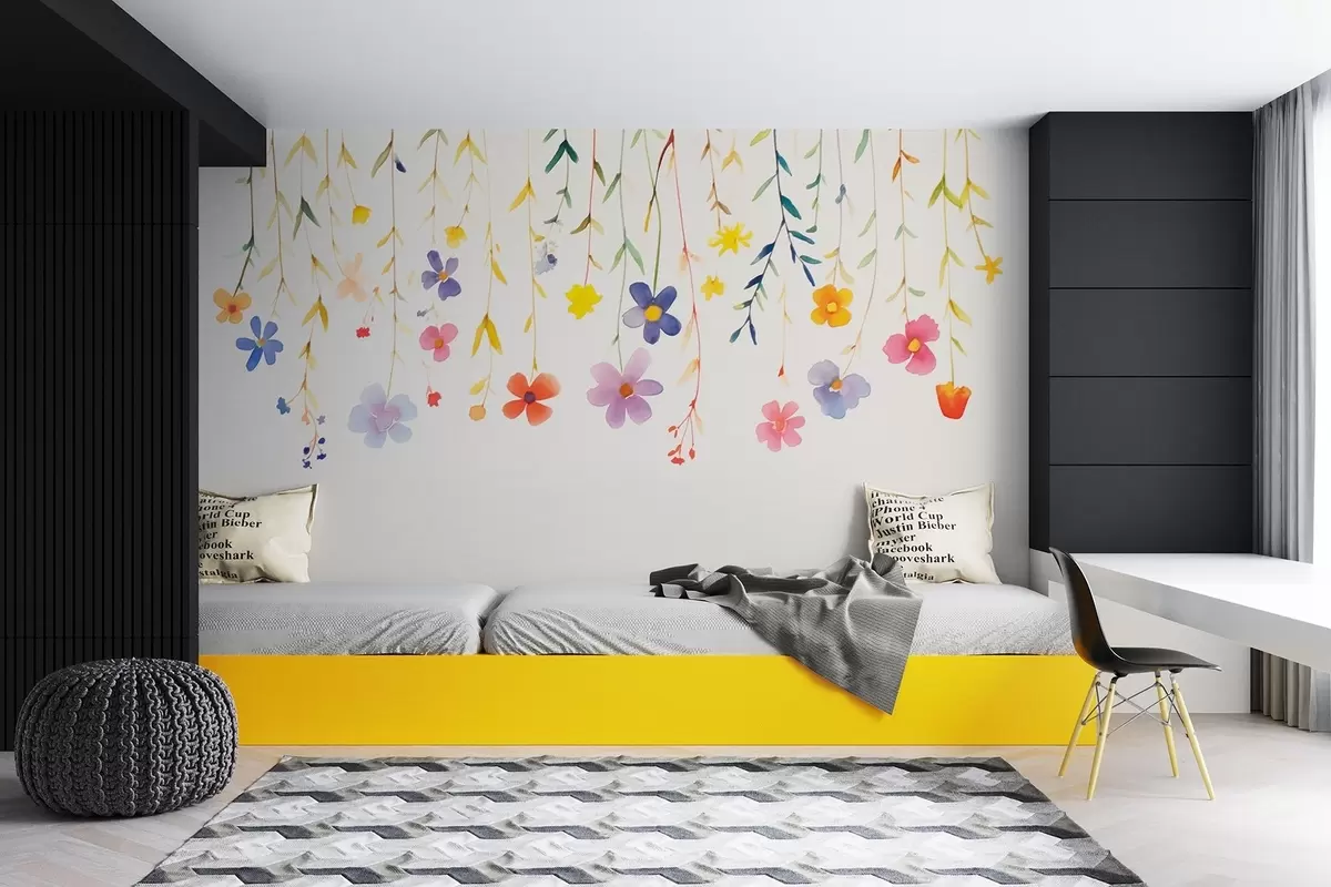 Fototapet Vilda blommor i akvarellstil, enkelt och färgstarkt Nr. w08851