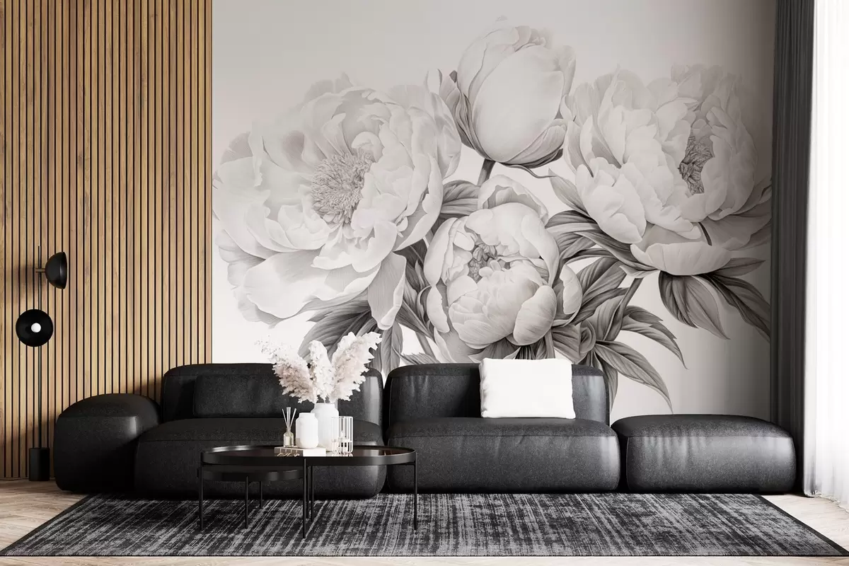 Fototapet Svartvita pioner i blyertsteckningsstil Nr. w08852