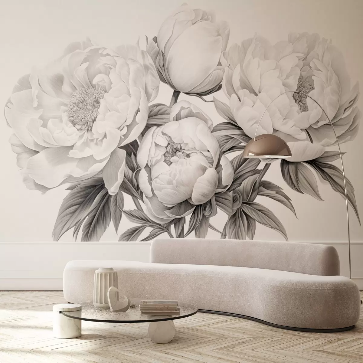 Fototapet Svartvita pioner i blyertsteckningsstil Nr. w08852