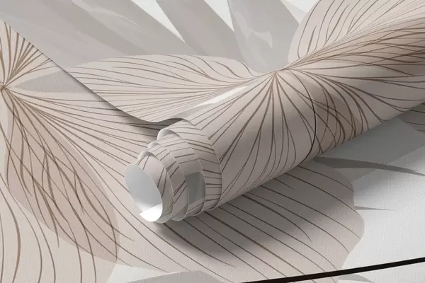 Fototapet Tropiska blad med mjuka pastellfärger, ljusgrönt , ljusrosa och ljusbrunt, vertikala linjer i bakgrunden Nr. w08892