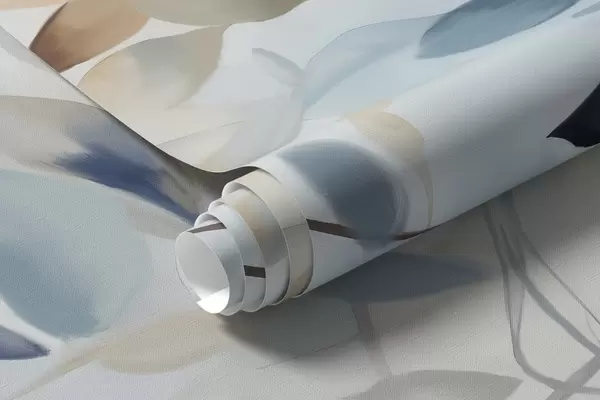Fototapet Grenar med blad i blå och bruna toner, ljus bakgrund, mjuk och skir, akvarellstil Nr. w08900