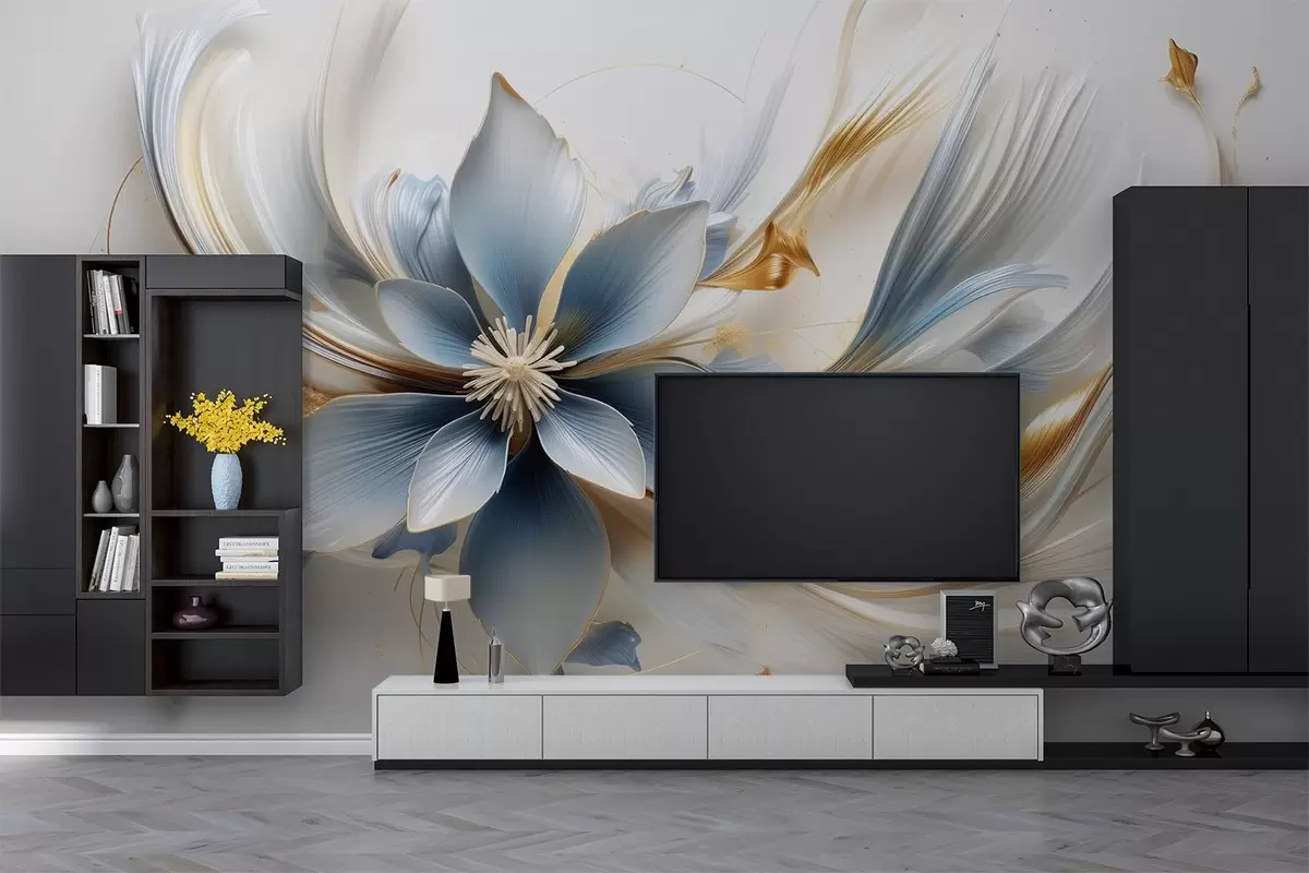 Fototapet Stor blå blomma med abstrakta linjer Nr. w08903