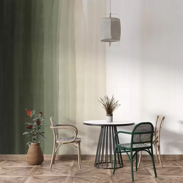 Fototapet Abstrakt minimalistiskt gradienttryck med vertikala ränder i mörkgrönt, beige och vitt Nr. w08915