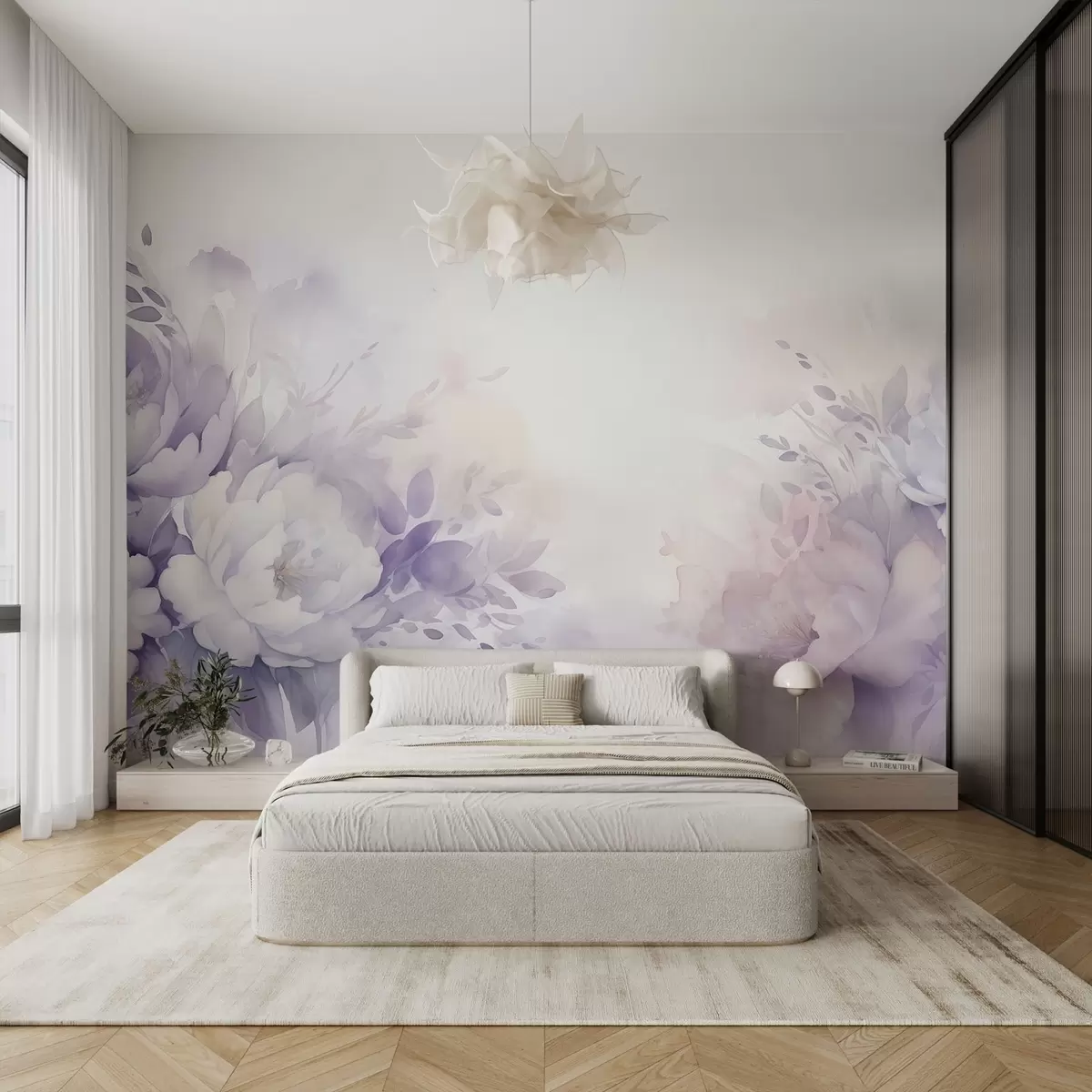 Fototapet Stora skira lila blommor, imitation av akvarell Nr. w08946