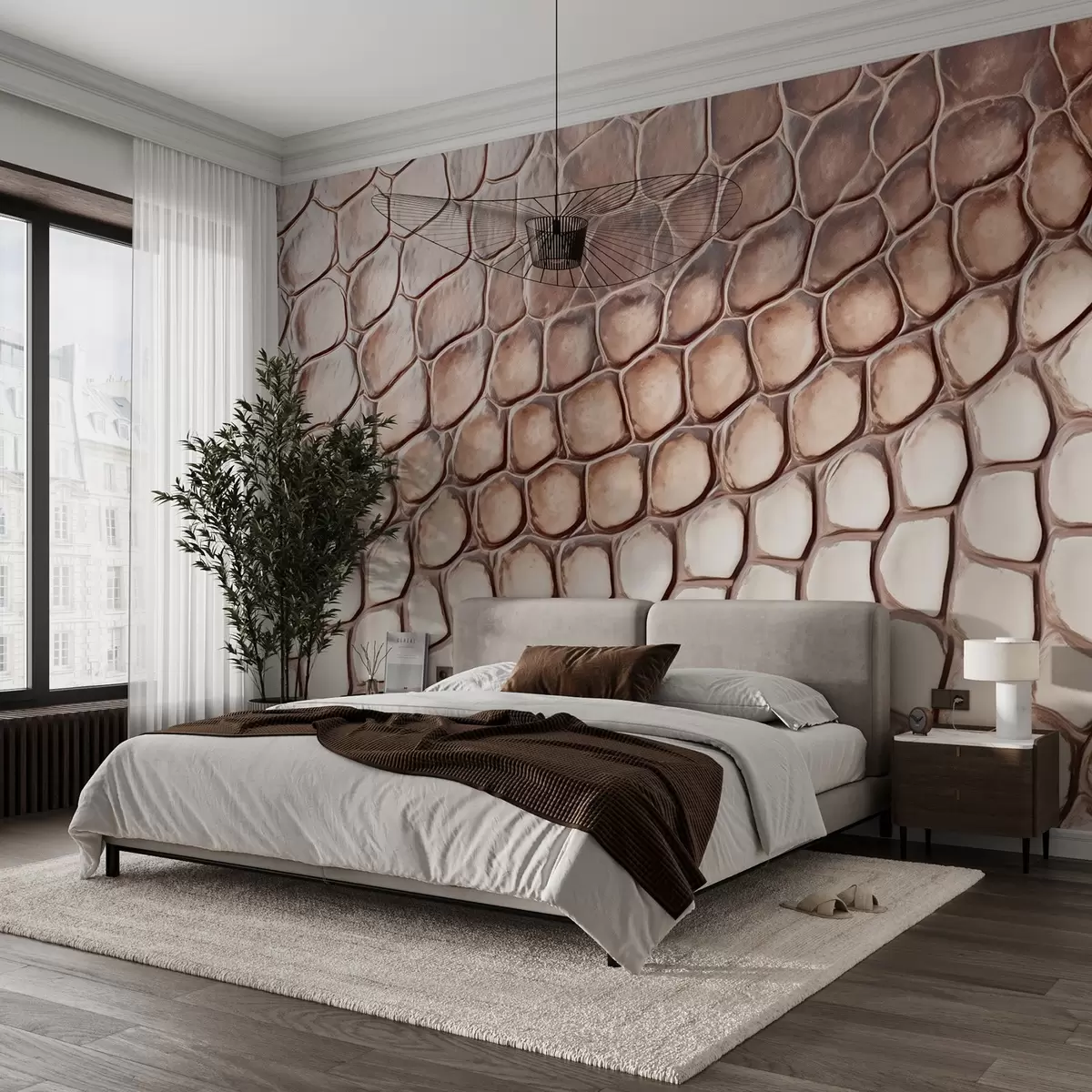 Fototapet Vitbrunt reptilskinn, fjällmönster Nr. w08957