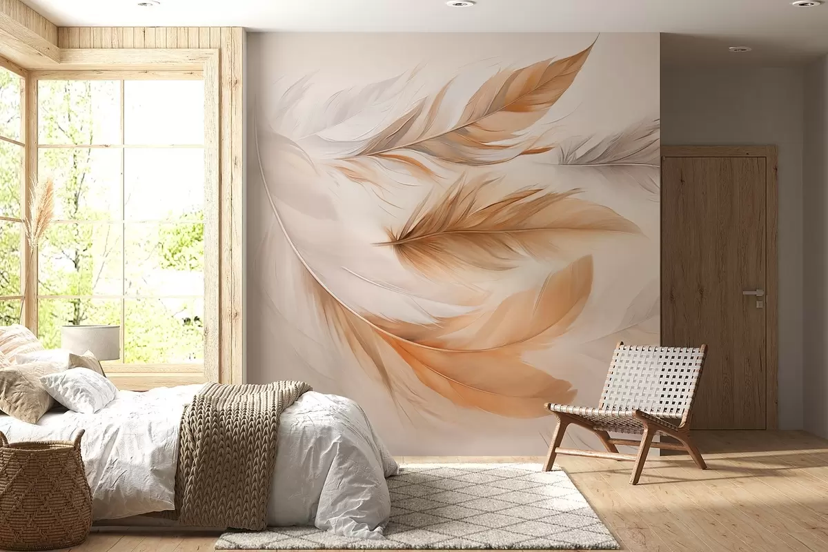 Fototapet Svävande luftiga brungrå fjädrar Nr. w08968
