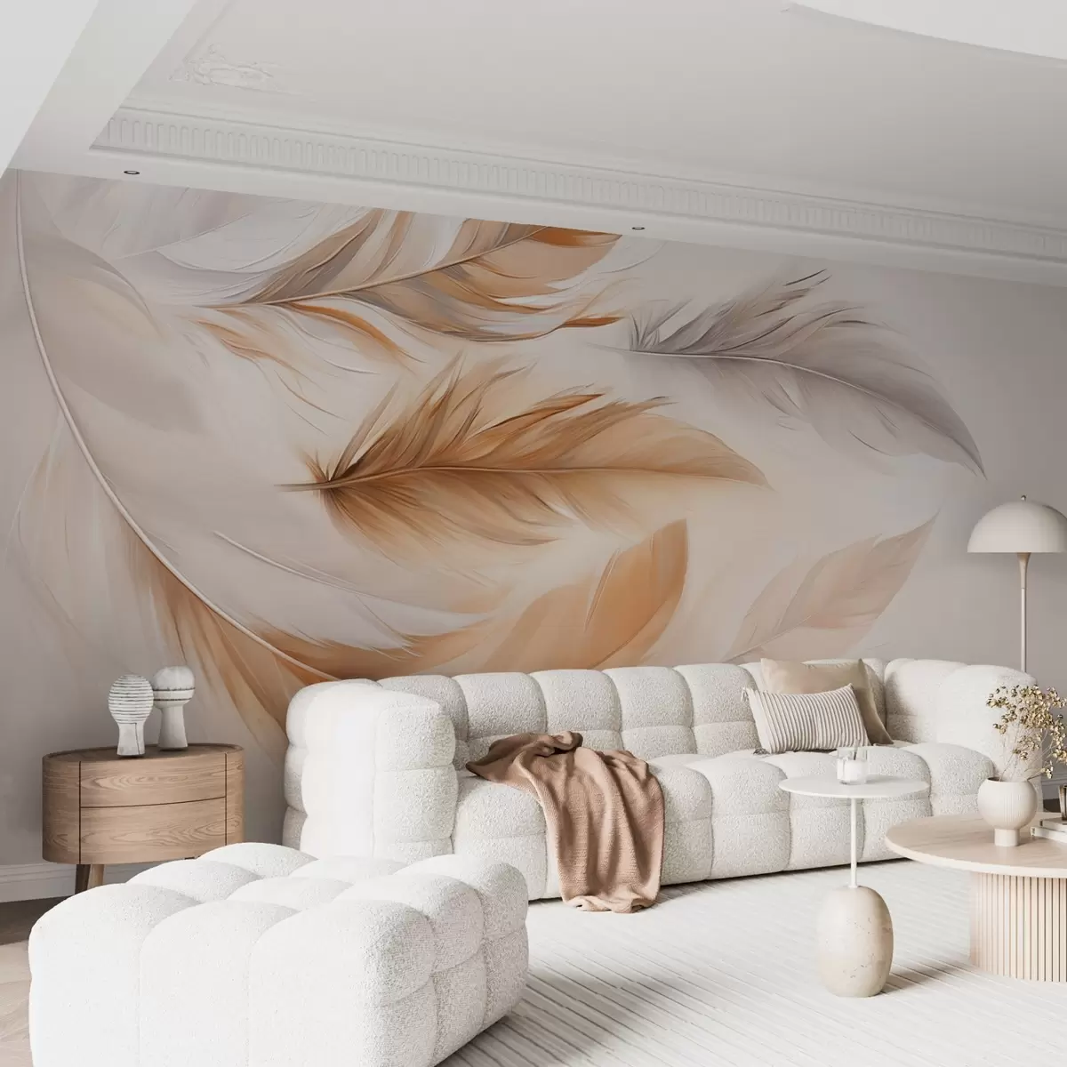 Fototapet Svävande luftiga brungrå fjädrar Nr. w08968