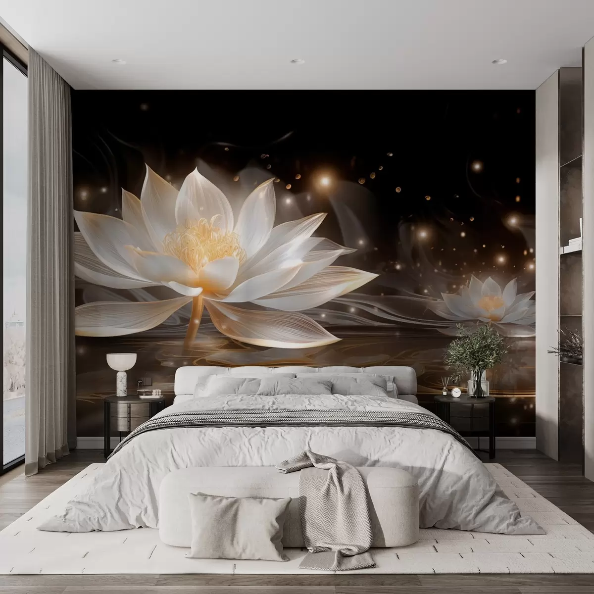 Fototapet Eleganta vita näckrosor på mörkt vatten Nr. w09021