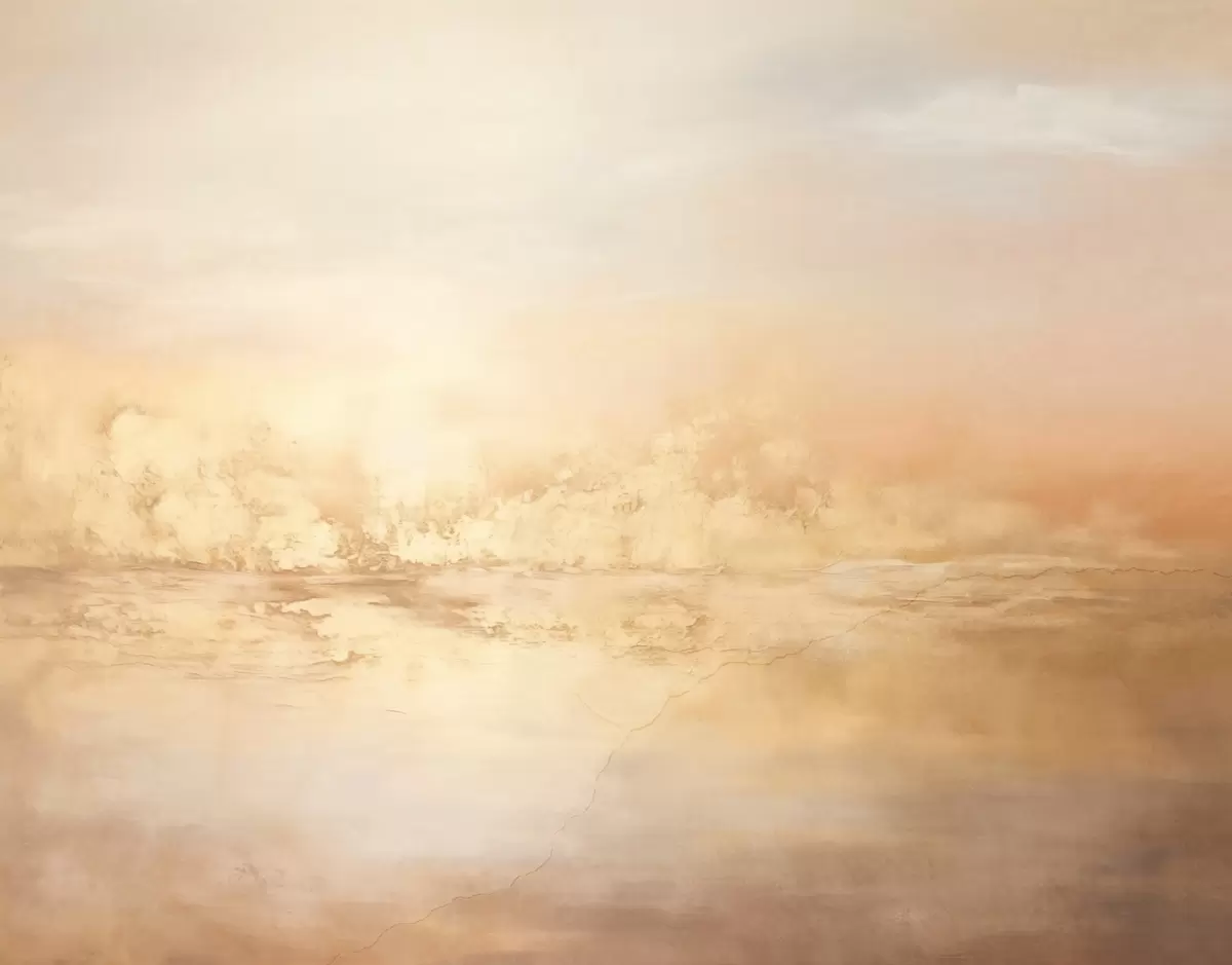 Fototapet Abstrakt texturerat landskap med varma färger, en mjuk och drömsk atmosfär och en blandning av orange, gula och vita nyanser Nr. w09063