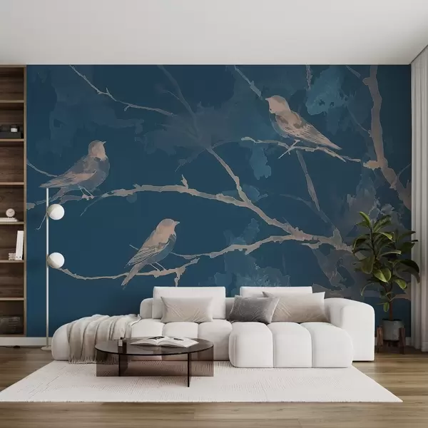 Fototapet Fåglar på trädgrenar i akvarellstil Nr. w09064v1
