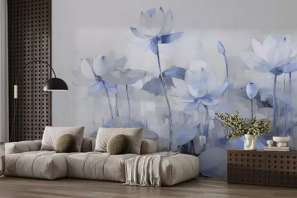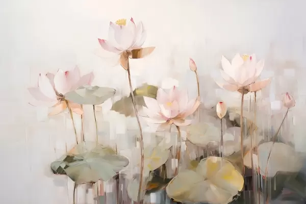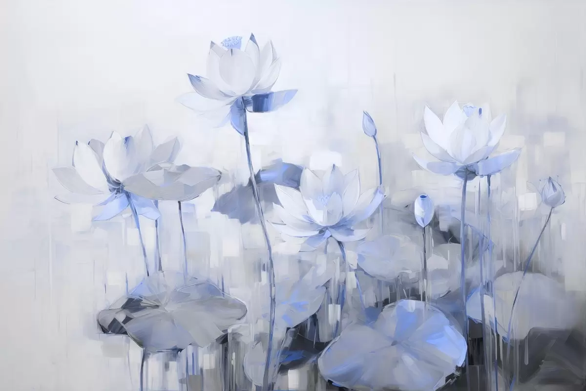 Fototapet Delikata lotusblommor målade med akryl Nr. w09067v1