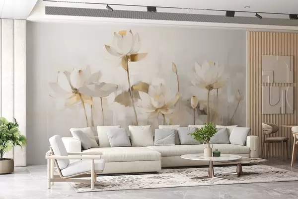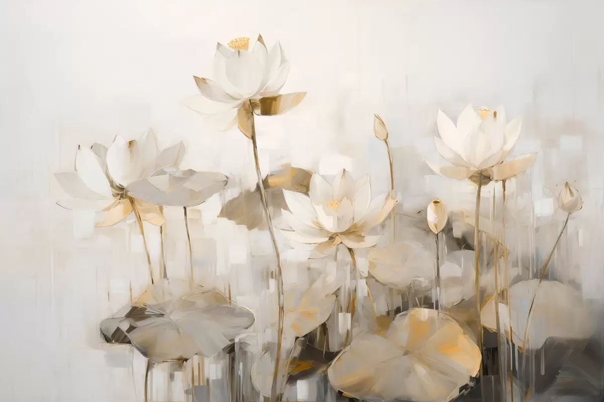 Fototapet Delikata lotusblommor målade med akryl Nr. w09067v2