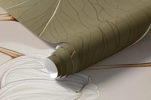 Fototapet Grenar av asplöv och blommor i oljemålningsstil i beige toner Nr. w09082