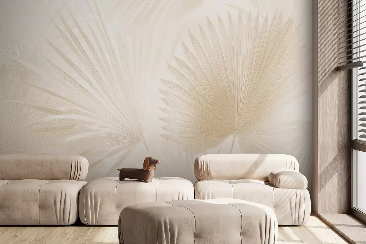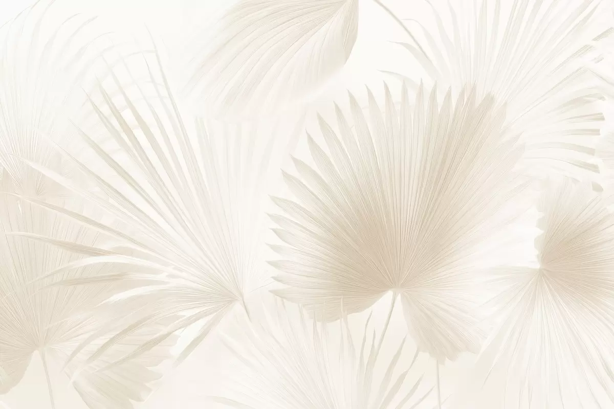 Fototapet Mjuka tropiska bladfläktar på en ljus bakgrund Nr. w09084v1