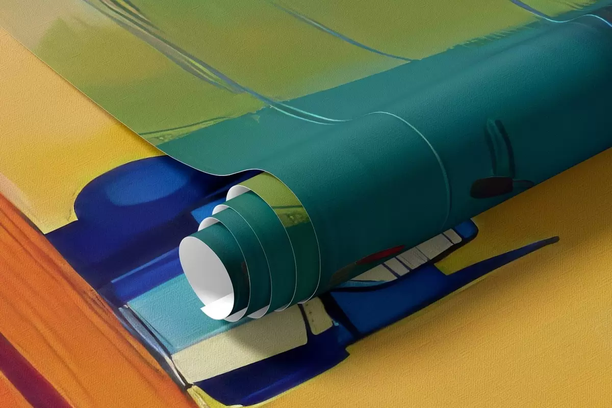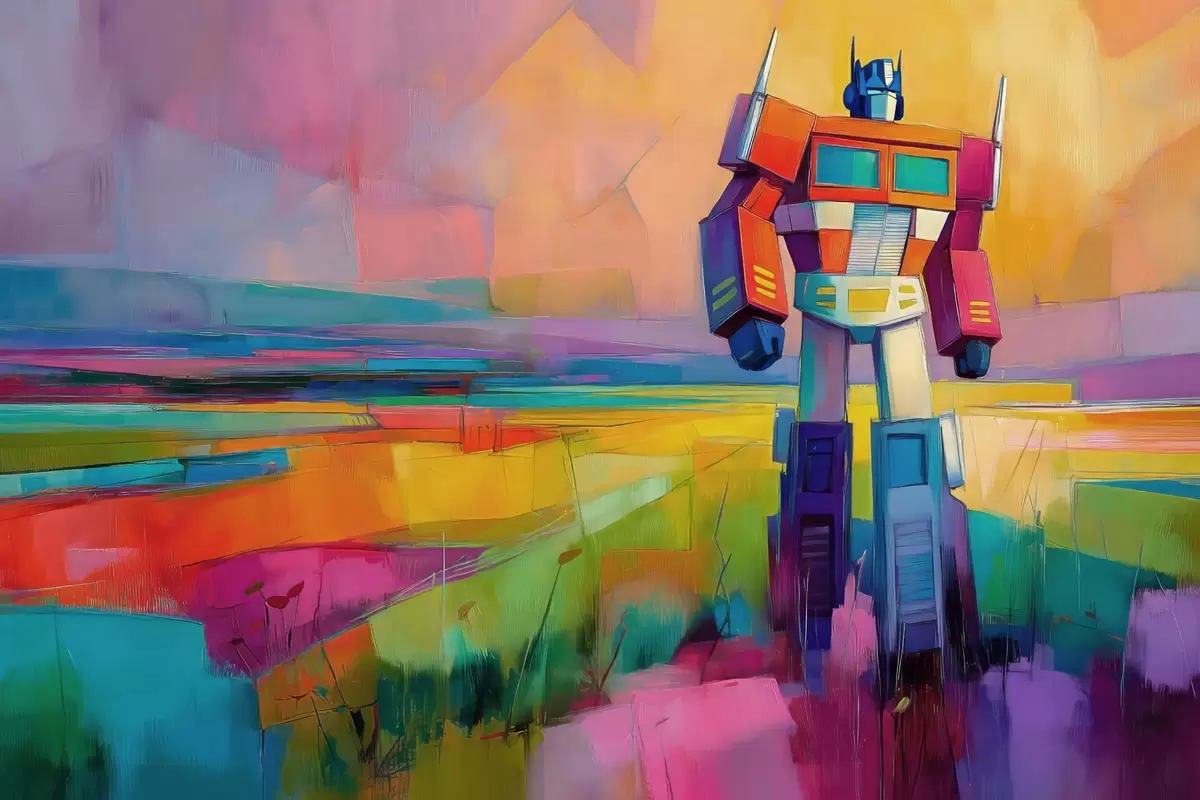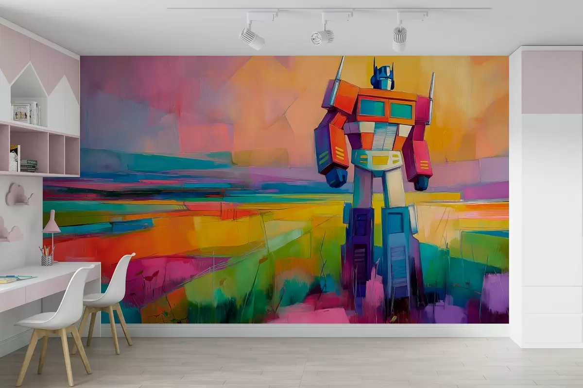 Fototapet Robot mot ett ljust abstrakt landskap i oljemålningsstil Nr. w09096