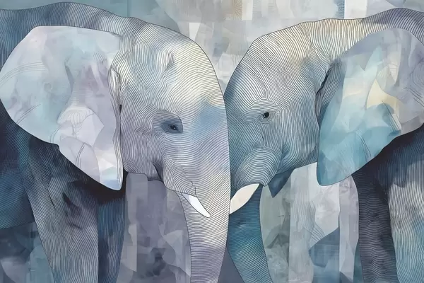 Fototapet Söta blå elefanter i akvarellstil Nr. w09098
