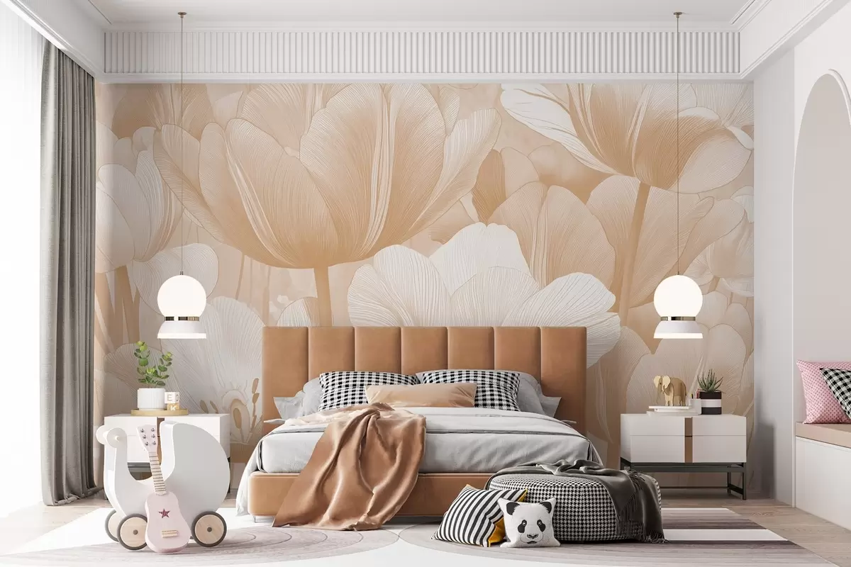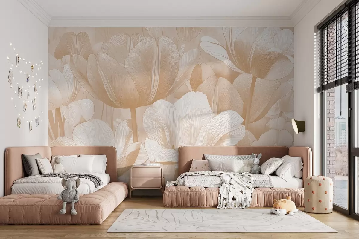 Fototapet Beige vallmo i ljusa toner Nr. w09099