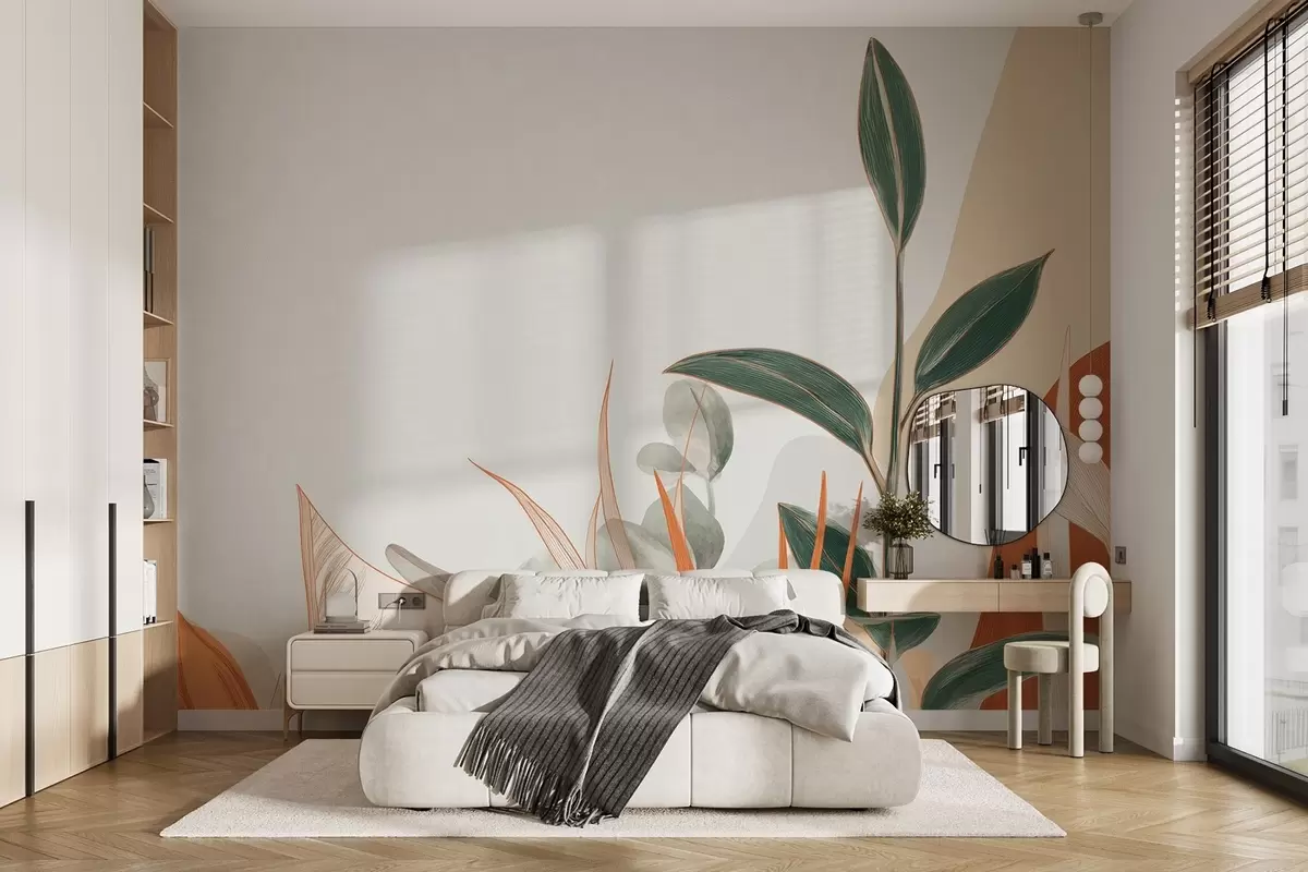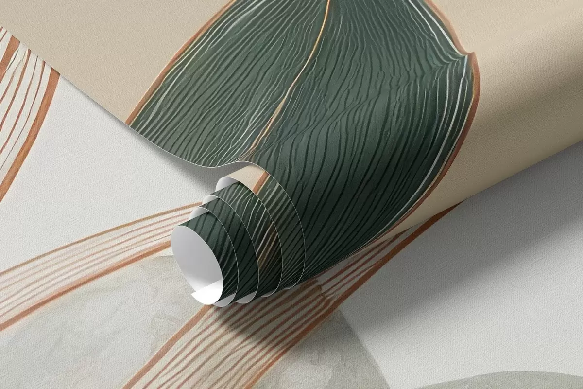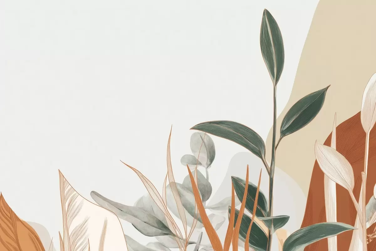 Fototapet Blad i beige och gröna toner Nr. w09101