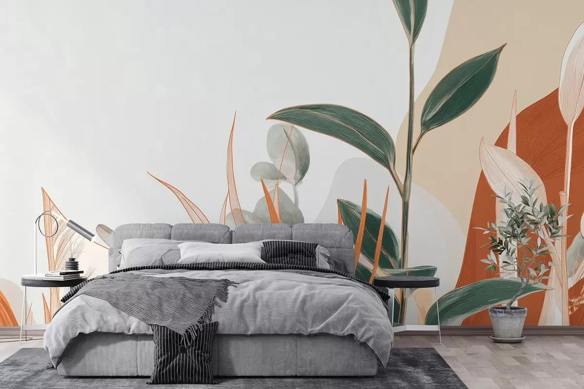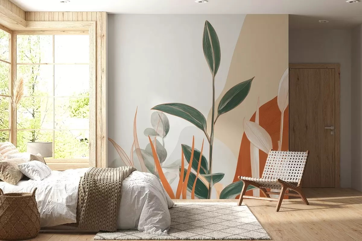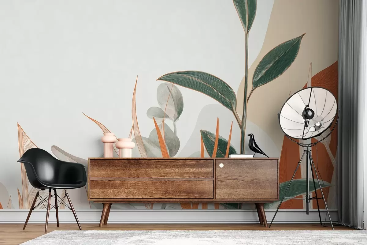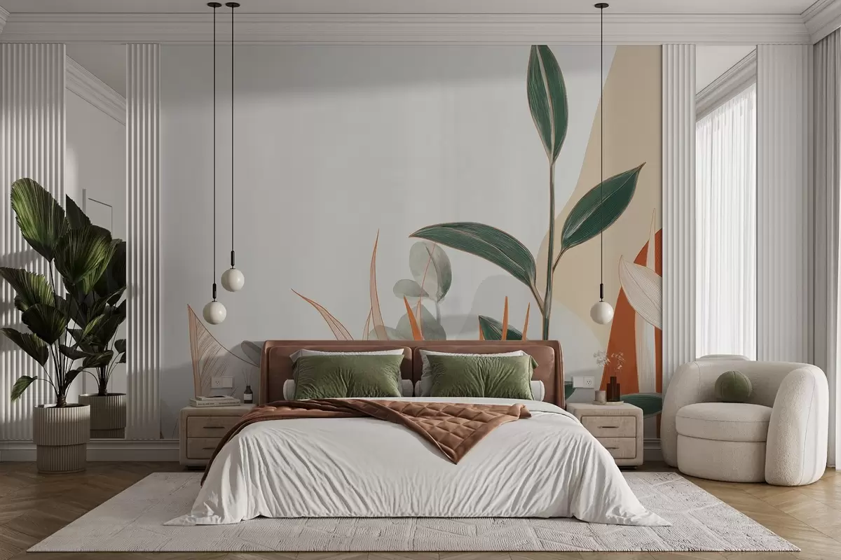 Fototapet Blad i beige och gröna toner Nr. w09101
