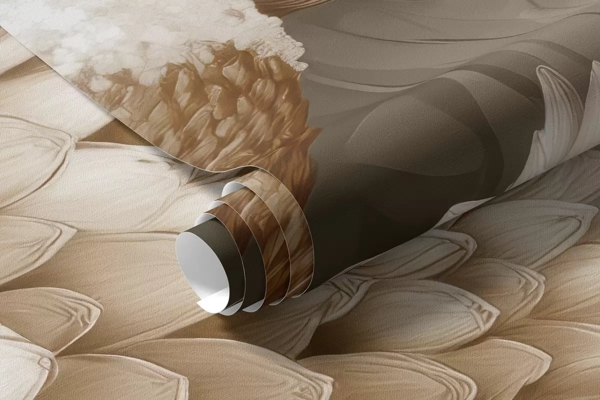 Fototapet Boho-harmoni: Texturerade blommor i beige och krämfärgade toner Nr. w09121