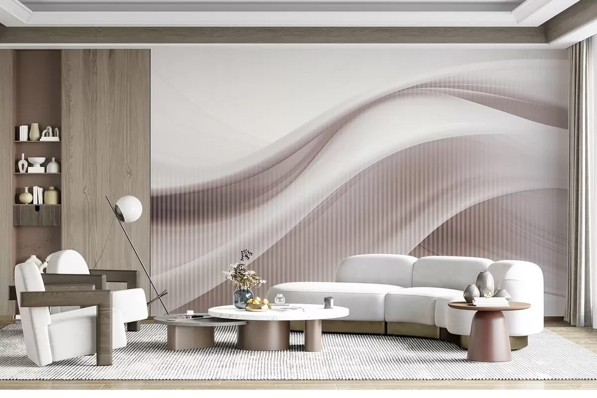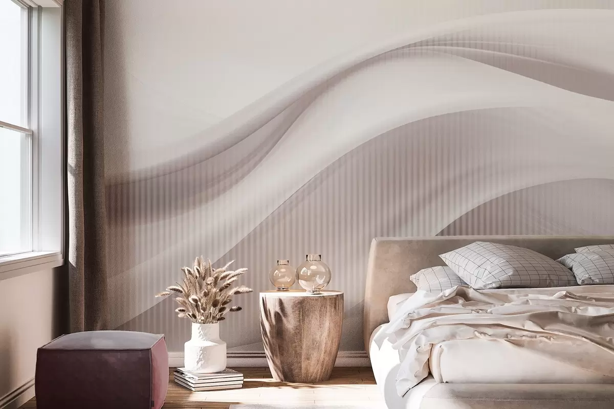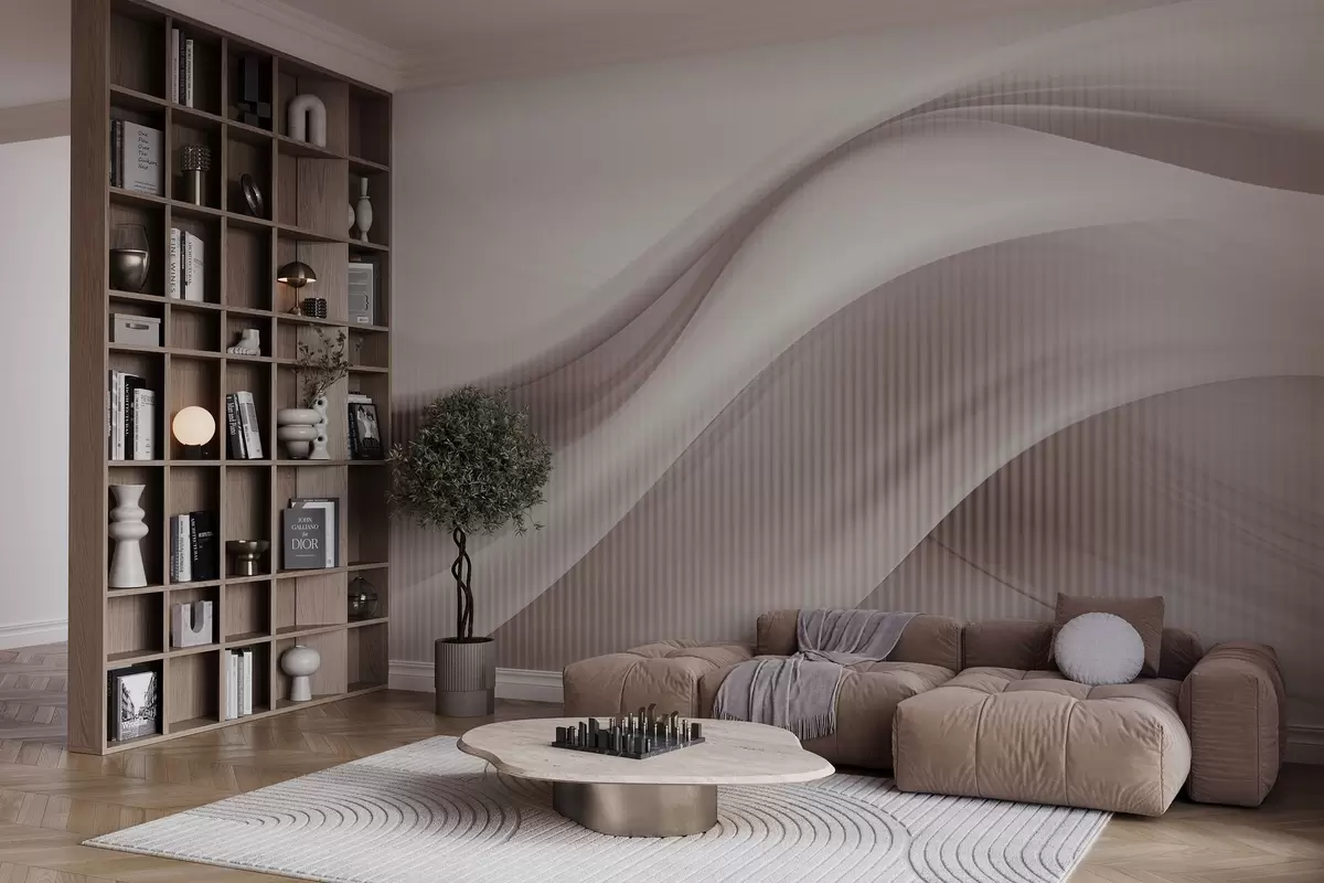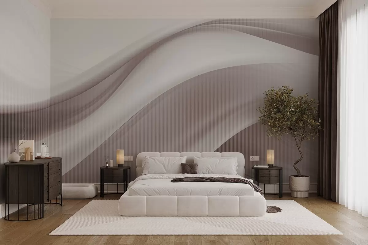 Fototapet Abstrakt tryck med böljande linjer och subtila vertikala ränder som skapar en känsla av rörelse och djup, beige palett Nr. w09189