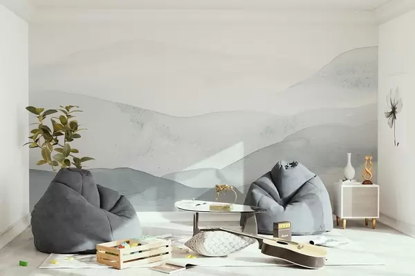 Fototapet Minimalistiska dimmiga berg i mjuka blå nyanser Nr. w09223v2