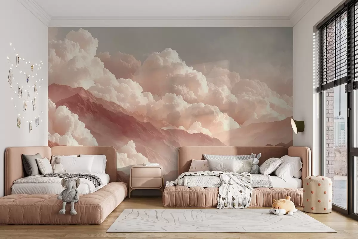 Fototapet Varm soluppgång över berg med fluffiga moln Nr. w09226