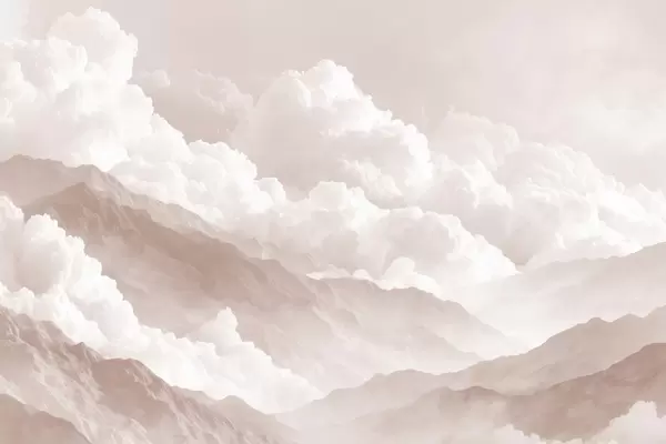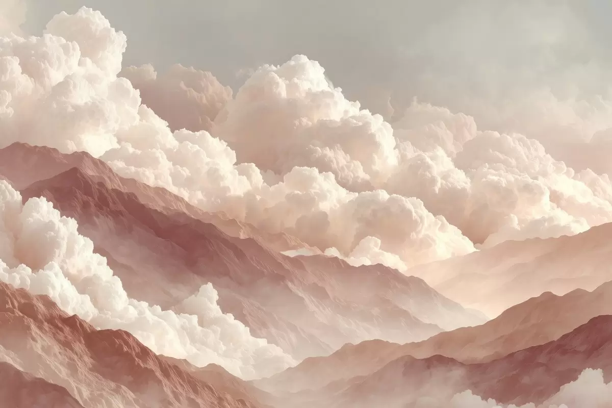 Fototapet Varm soluppgång över berg med fluffiga moln Nr. w09226