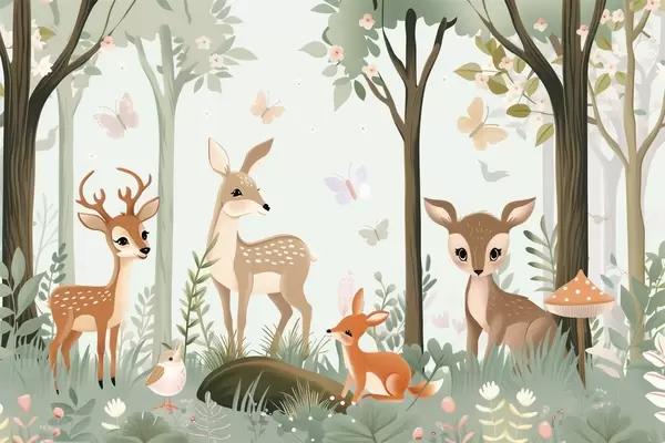 Fototapet Finurliga skogsdjur i blå toner Nr. w09227v1