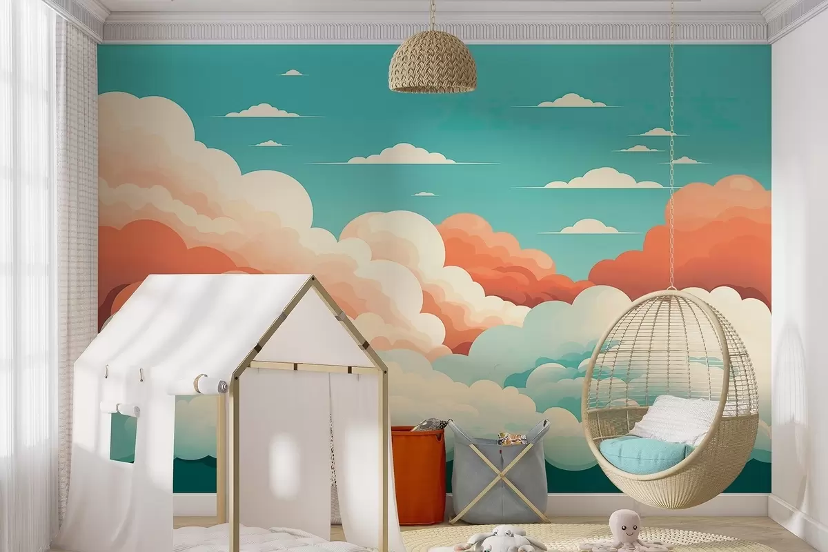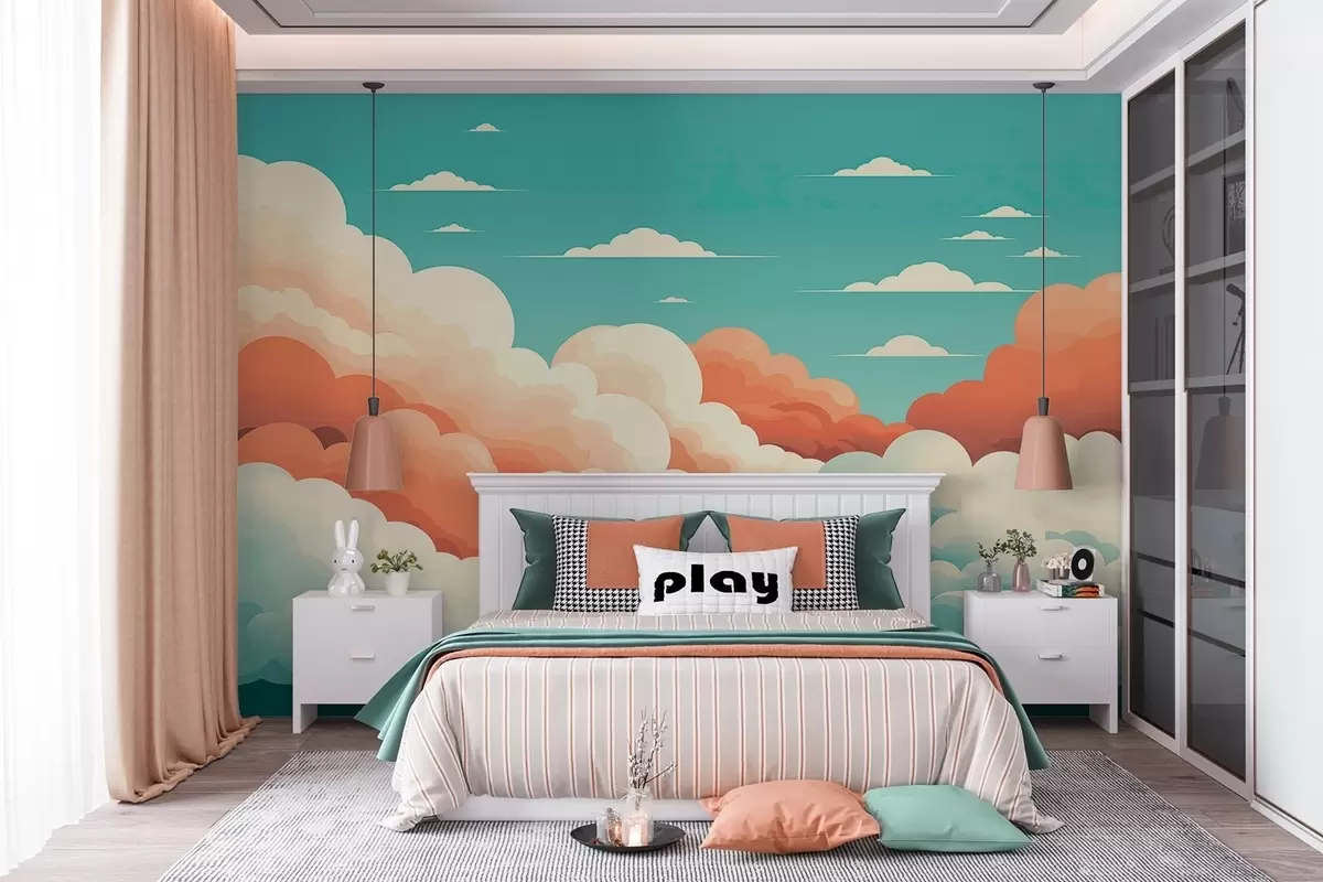 Fototapet Fantasifulla moln i serietidningsstil under en blå himmel Nr. w09246