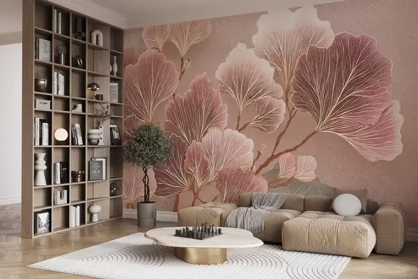 Fototapet Gren av blad i rosa och lila nyanser Nr. w09249