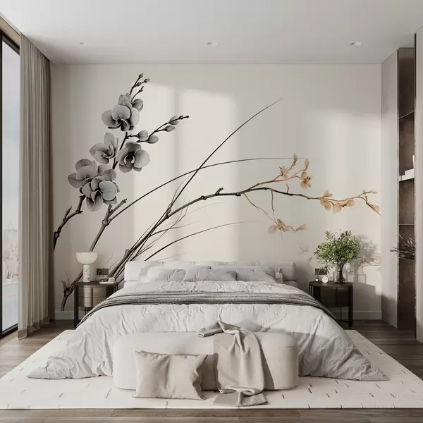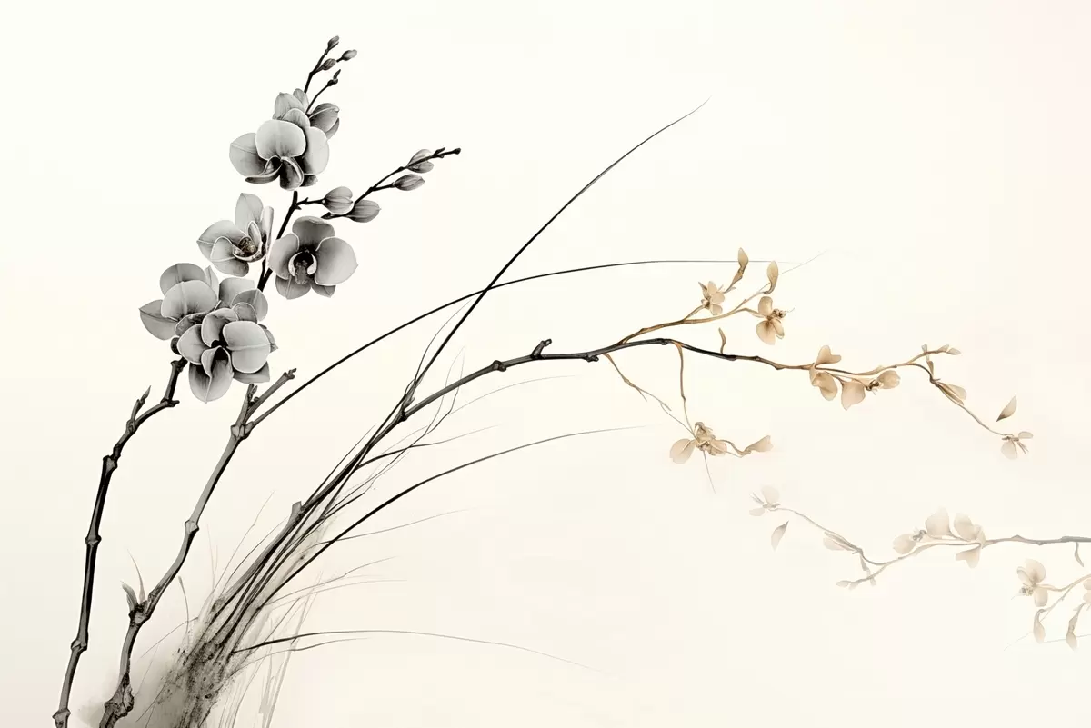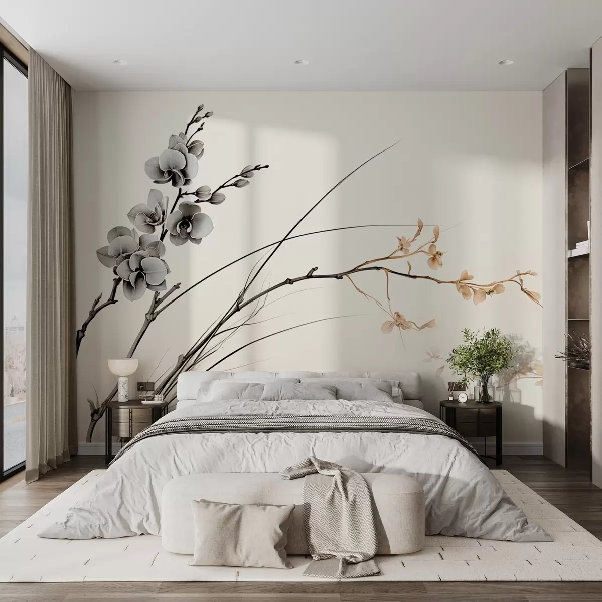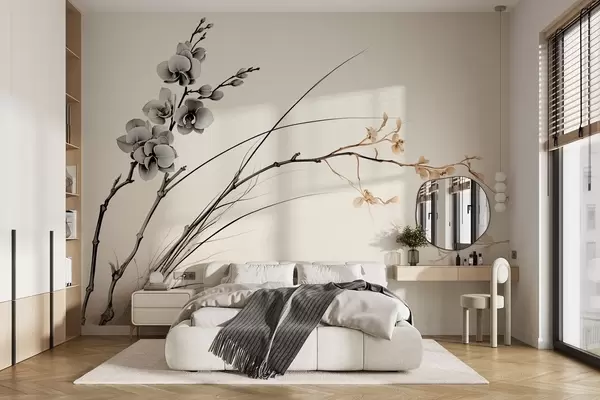 Fototapet Minimalistisk orkidégren i mjuka sepia- och gråtoner Nr. w09250