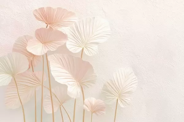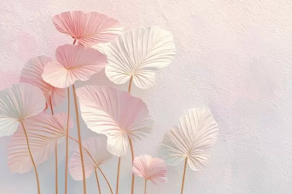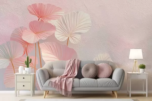 Fototapet Eleganta stora tropiska blad i mjuka rosa och blå nyanser Nr. w09252