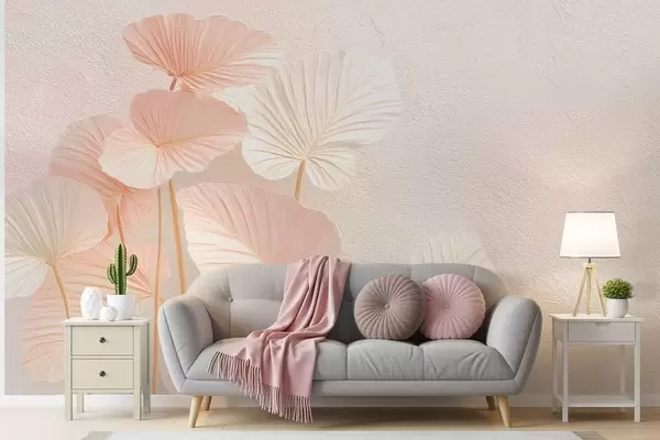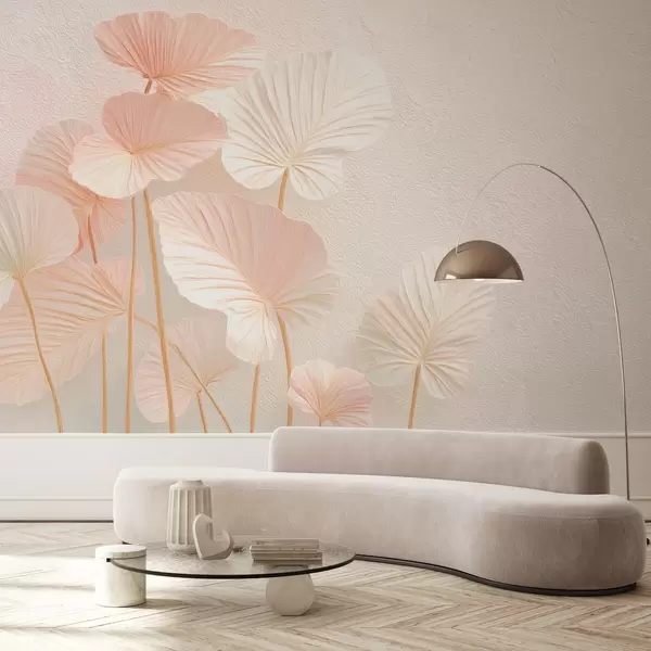 Fototapet Eleganta stora tropiska blad i delikat rosa färg Nr. w09252v1