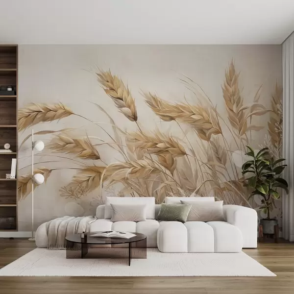 Fototapet Vetefält med beige kornax som vajar i vinden, mjuka och dämpade färger som skapar en känsla av värme Nr. w09264