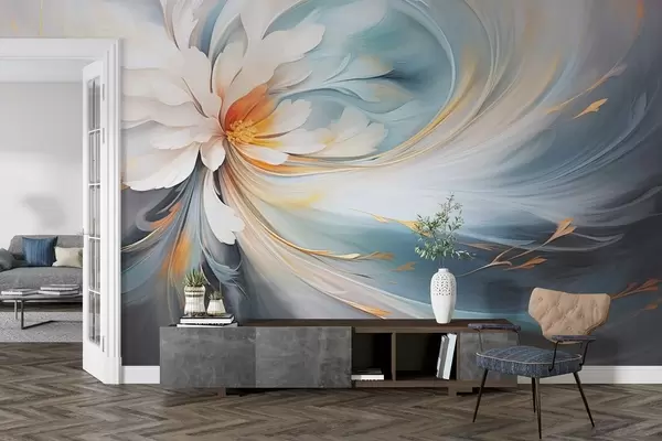 Fototapet Abstrakt blomma i mjuka blå och orange toner Nr. w09270
