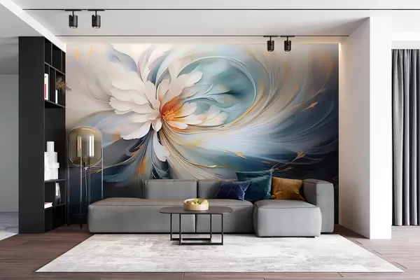 Fototapet Abstrakt blomma i blå och orange toner Nr. w09270v1